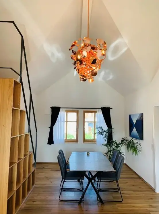 Loft über dem Bodensee to przestrzenny apartament położony w Heiligenberg. Mieszkanie oferuje dwa pokoje śpienniki oraz łazienkę. Pokoje rodzinnego typu zapewniają duże powierzchnie dla relaksu i komfortu. Apartament wyposażono nowoczesnymi udogodnieniami takimi jak darmowe Wi-Fi, kompletna kuchnia z zmywarką, mikrowolframem, pralką oraz balkonem z meblami ogrodowymi. Dodatkowo dostępne są kominek, telewizor oraz bezpłatny prywatny parking na terenie budynku. Lokalizacja jest wygoda – znajduje się w odległości 21 kilometrów od lotniska Friedrichshafen i 30 kilometrów od muzeum Art & Cars. Goście często podkreślają dużą przestrzeń i wysoką jakość wyposażenia.